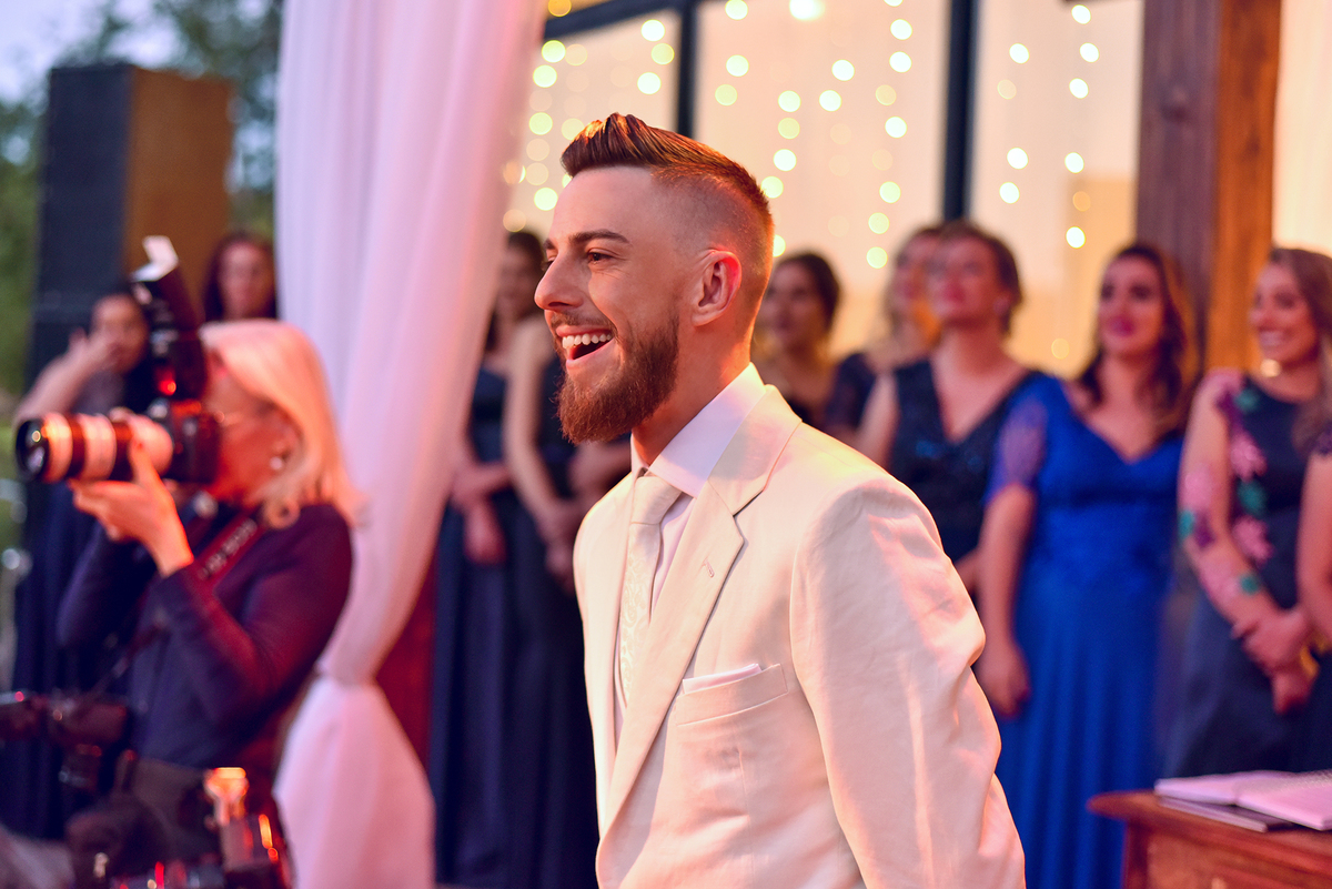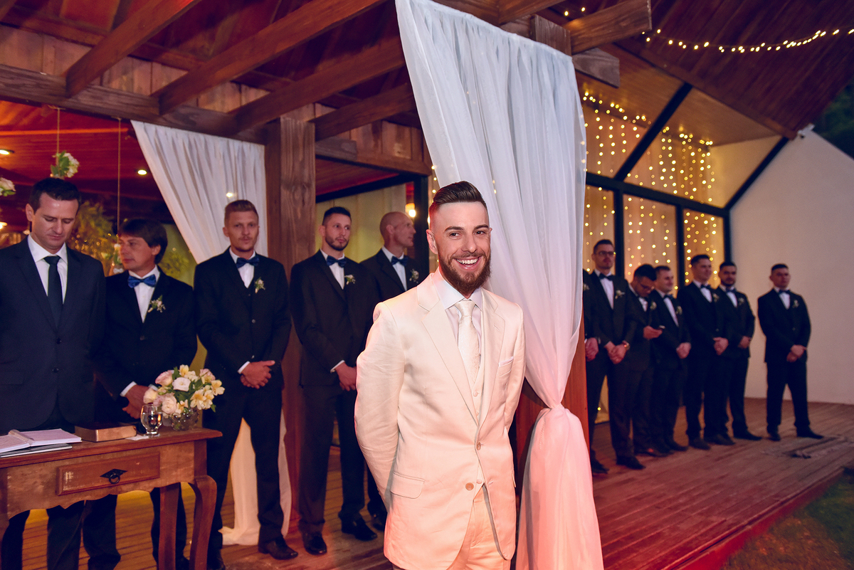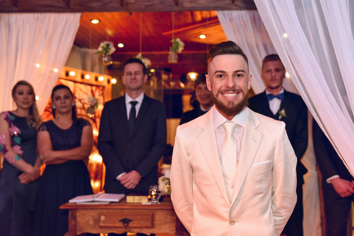 O Jean todo estiloso, a noiva toda linda, convidados emocionados, sorrisos para todos os lados, uma celebração cheia de vida e de amor, Deus é bom o tempo todo.